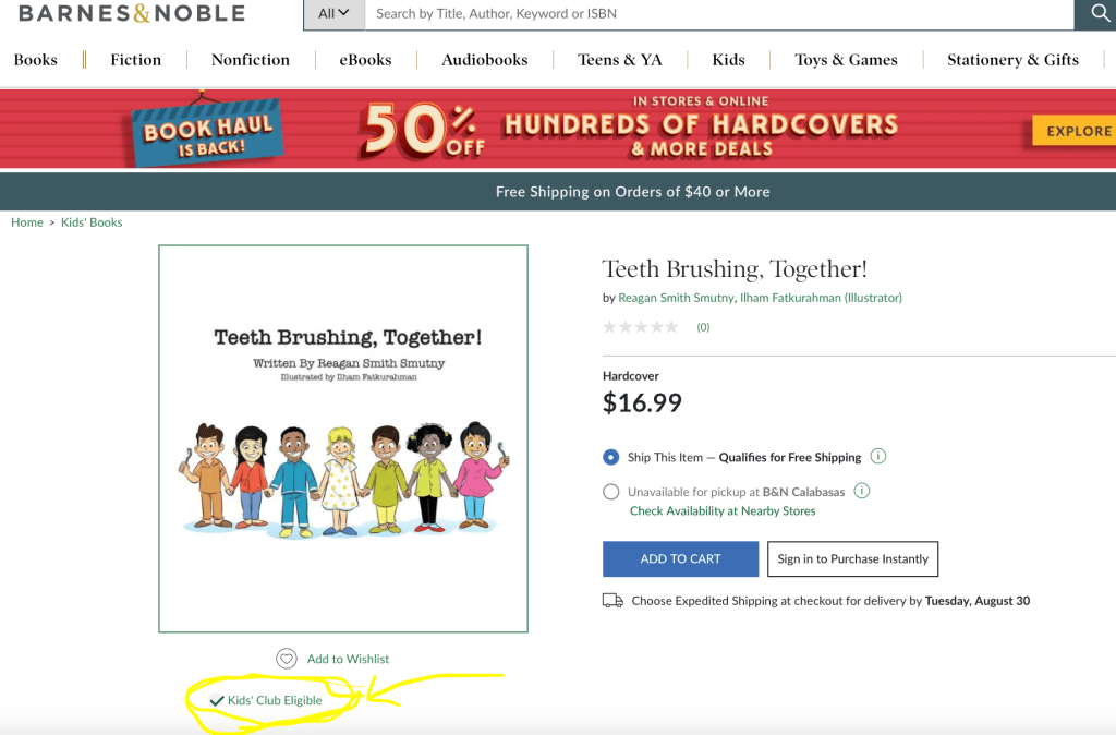 I am thrilled to share that “Teeth Brushing, Together!” is now a part of Kids’ Club at Barnes and Noble. Check it out for monetary discounts, rewards, and more!